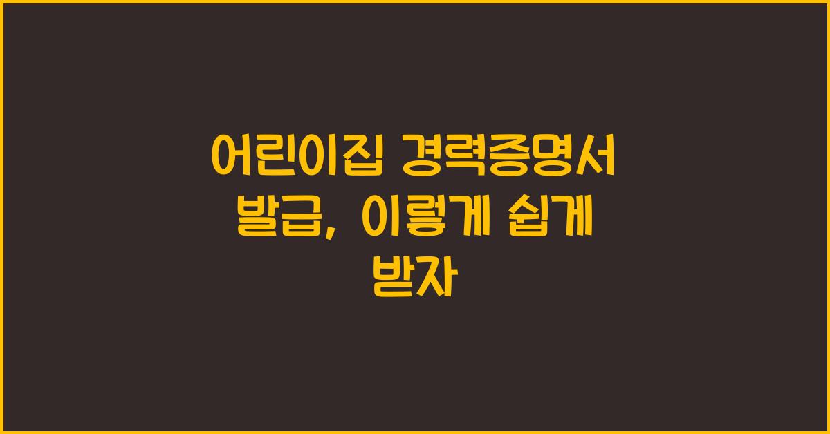 어린이집 경력증명서 발급, 왜 필요할까?어린이집 경력증명서는 어린이집에서 근무했던 경력을 공식적으로 증명해주는 중요한 서류입니다. 특히, 어린이집에서 일하고자 하거나 새로운 직장에서 요구될 때 필수적으로 필요한 경우가 많죠. 이 증명서가 있다면 여러분의 경력과 노력을 증명해줄 수 있는 강력한 무기가 되어 줄 것입니다.어린이집 경력증명서 발급 더 알아보기경력증명서는 여러분의 이력서에 신뢰성을 더해주고, 다양한 직무에서의 경험을 강조할 수 있는 기회를 제공합니다. 특히 어린이집 조리사 경력증명서 발급을 통해 요리 업종에서도 경력을 인정받을 수 있습니다. 그리고 이는 단순한 문서가 아니라, 여러분의 미래를 결정짓는 중요한 역할을 할 수 있답니다.또한, 어린이집 경력증명서 발급 과정은 생각보다 간단합니다. 많은..